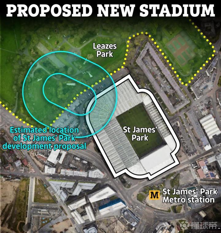 据报道,纽卡斯尔方面一直在研究如何将现有的球场容量从现在的近5.2万人提升到更高的水平。选项包括在附近的利兹公园(Leazes Park)新建一座斥资30亿英镑的现代化球场,或者对现有的圣詹姆斯公园进行改造。