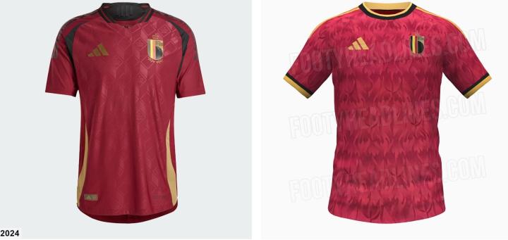 此次主场球衣将依旧搭配黑色短裤与黑色球袜,据悉客场球衣色调将以黄色为主。与2024年的主场球衣相比,2026年的设计在色彩饱和度和图案表现上更为激进,从相对简洁的条纹过渡到极具冲击力的火焰暗纹,突出了比利时队“燃烧的红魔”形象。