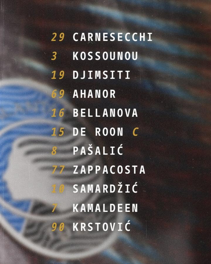 替补:31-弗朗切斯科-罗西、57-斯波尔蒂耶洛、6-尤纳斯-穆萨、11-卢克曼、13-埃德松-席尔瓦、17-德凯特拉雷、40-奥布里奇、44-布雷夏尼尼、47-贝尔纳斯科尼、70-丹尼尔-马尔蒂尼