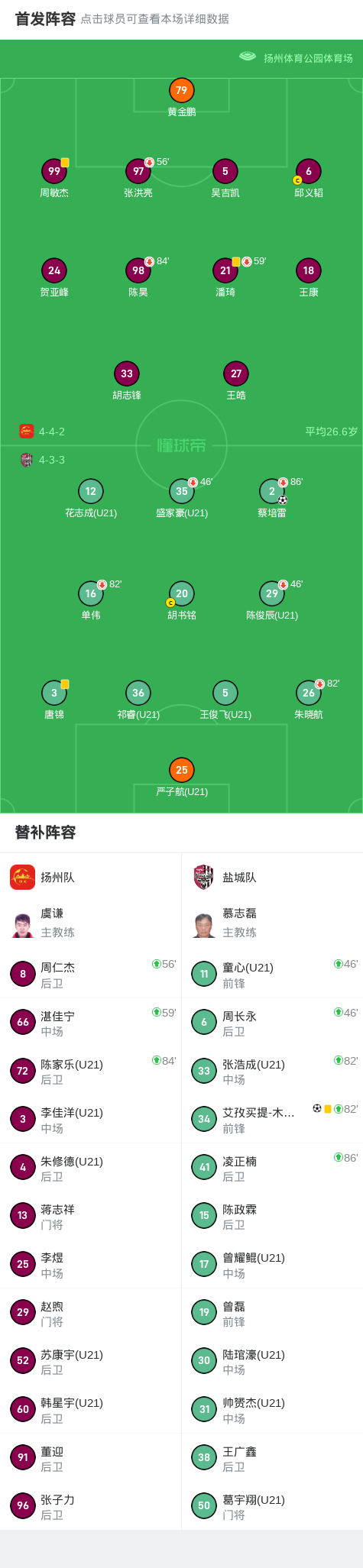 第72分钟,角球开出,蔡培雷头球破门打破僵局,盐城队1-0扬州队
