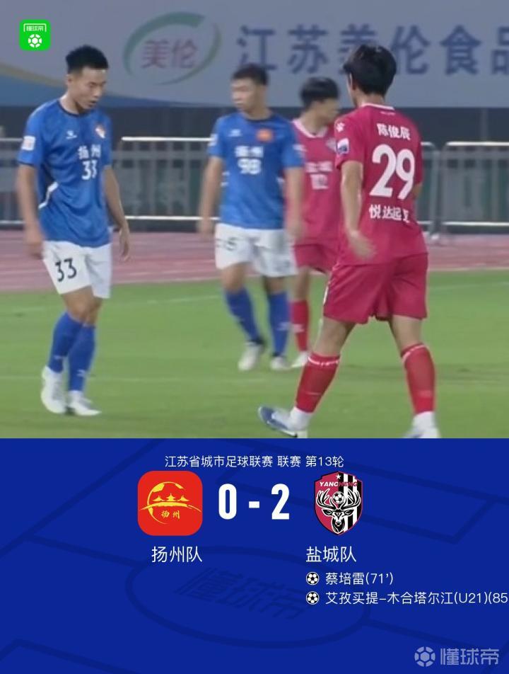 盐城队2-0扬州队,蔡培雷破门,艾孜买提-木合塔尔江锁定胜局