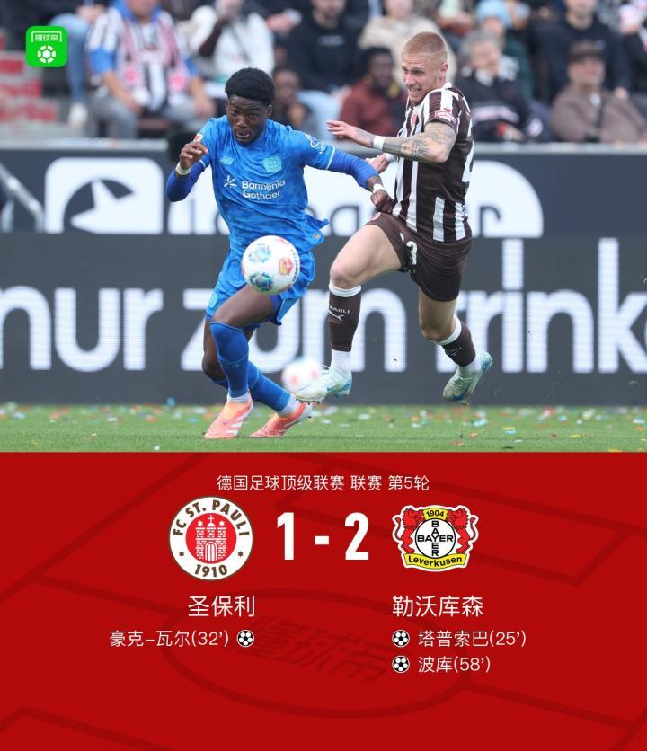 勒沃库森2-1圣保利,波库、塔普索巴破门