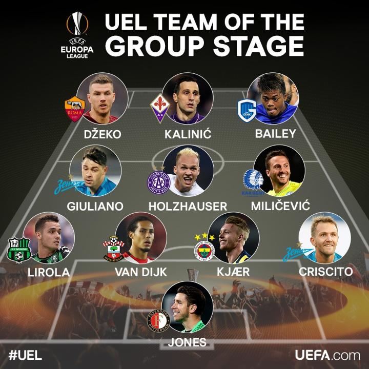 (2016/17赛季欧联杯小组赛最佳阵容。)