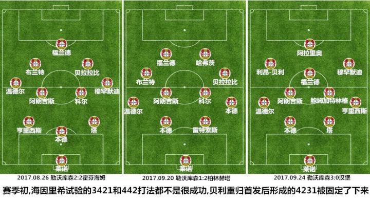在度过了一个纷繁而混乱的赛季之后,勒沃库森在2017年夏窗迎来了新帅海特-海因里希,这位45岁的主教练最初对利昂-贝利的态度是“谨慎使用”,在首次首发面对拜仁慕尼黑表现不佳被半场换下后,牙买加人在接下来的比赛中都是替补出场,总计不到90分钟的出场时间让他无法完成助攻或进球的数据录入。2017年9月24日德甲第6轮,勒沃库森主场对阵汉堡的比赛成为了利昂-贝利职业生涯的里程碑式战役:海因里希在3421阵型和442阵型相继失灵后破釜沉舟地变阵4231,利昂-贝利回归首发出任主力(左边锋)与福兰德、阿拉里奥和穆罕默迪共同经营前场,牙买加新星在比赛中打满全场贡献2次助攻,制造3次得分机会和6次成功过人的数据同样是全场最佳。