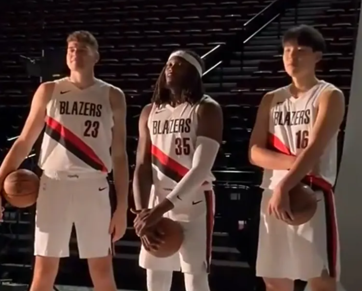 杨瀚森拍摄了新赛季定妆照,也是他第一次穿着开拓者队的正式球衣进入波兰特的主场球馆。当被问到有什么特殊的感受时,杨瀚森非常幽默地回答道:“挺凉快的。”