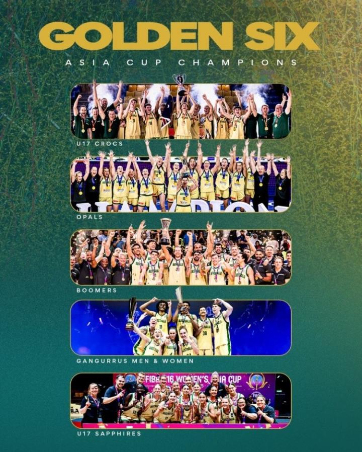 澳大利亚篮协官方社媒写道:“6支球队,6次亚洲杯冠军。从三人篮球到成年国家队再到青少年比赛,澳大利亚篮球取得了惊人的全面胜利,我们在今年的亚洲杯每个项目中都拿到了冠军。”