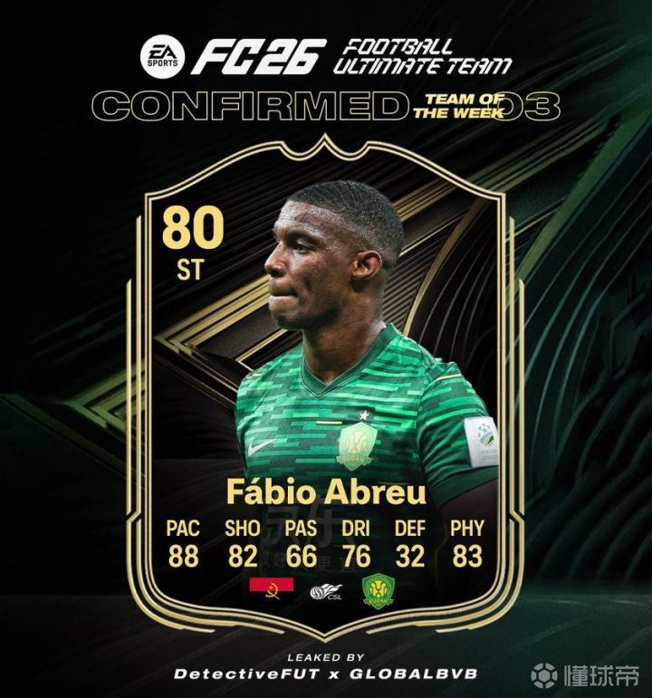 据博主DetectiveFut报道,北京国安外援法比奥-阿布雷乌将入选《FC26》本周周黑。