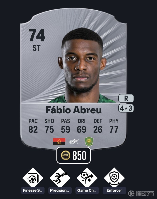 74评分,4花3逆。银特技为搓射、精准头球、破局者、护球。