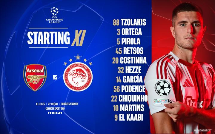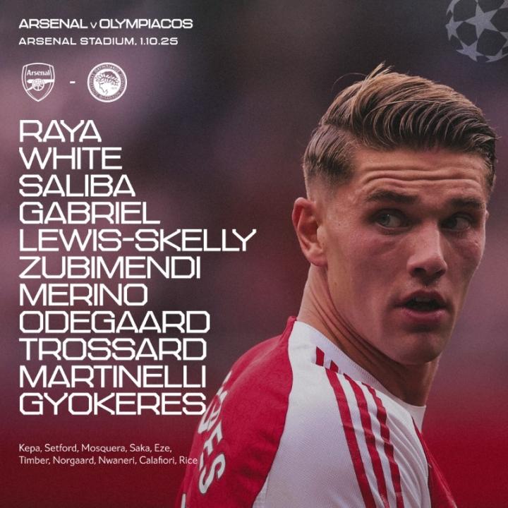 北京时间10月2日03:00,欧冠联赛阶段的一场较量。阿森纳坐镇主场,迎战奥林匹亚科斯。赛前,双方的阵容公布如下: