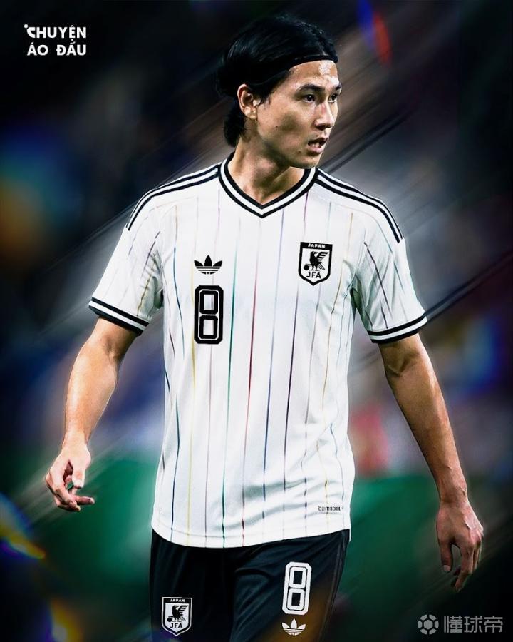 日本队26世界杯客场球衣曝光:米白色为主,七彩霓虹线条