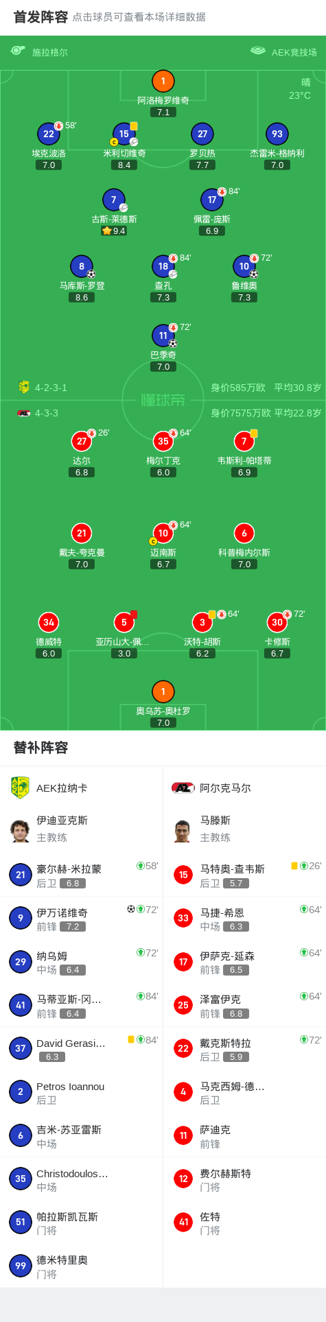 AEK拉纳卡4-0大胜阿尔克马尔,马库斯-罗登破门,伊万诺维奇建功