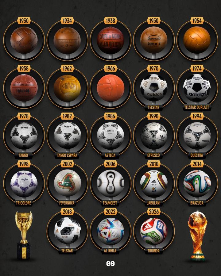 FIFA发布2026世界杯用球,你对哪届的世界杯用球印象最深呢绿茵场聚光灯 @懂球帝2025-10-03 15:35第23届国际足联世界杯将于2026年6月11日至7月19日在美国、加拿大和墨西哥三国联合举办,是历史上首次由三个国家共同承办的世界杯。北京时间10月3日,国际足联发布了世界杯比赛用球,由阿迪达斯设计,名为“TRIONDA”,内置传感器。以下为历届世界杯比赛用球,哪届的比赛用球给你留下的印象最深呢?相关阅读FIFA发布2026年世界杯比赛用球,内置最新一代传感器 展开更多