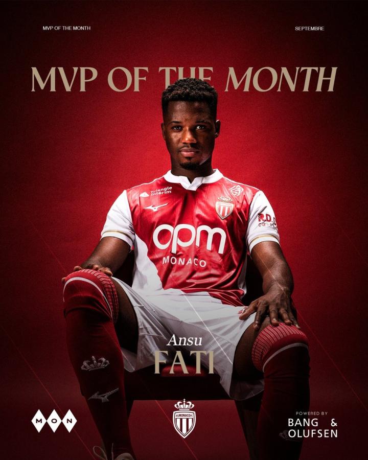 3场4球,法蒂当选摩纳哥9月最佳球员ETChalmers @懂球帝2025-10-03 18:10官方消息,法蒂当选摩纳哥队内9月最佳球员。摩纳哥官方宣布,法蒂当选队内9月最佳球员。法蒂在今年7月初从巴塞罗那租借加盟摩纳哥,但他直到9月中旬才完成首秀。法蒂在欧冠对阵布鲁日的摩纳哥首秀中打入一球,之后在对阵梅斯的法甲比赛中上演梅开二度,联赛对阵洛里昂又打入一球。最终凭借3场4球的出色表现,法蒂被球迷们评为摩纳哥9月最佳球员。展开更多