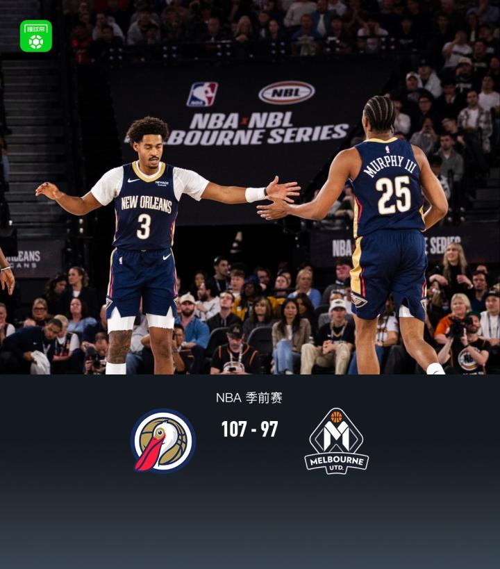 北京时间10月3日NBA季前赛,新奥尔良鹈鹕对阵墨尔本联。半场鹈鹕62-51墨尔本联,最终鹈鹕107-97墨尔本联。