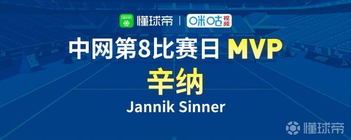 2025年中网第八比赛日的比赛全部结束,由懂球帝联合咪咕体育评选的第八比赛日MVP评选结果出炉,辛纳获得最佳球员。