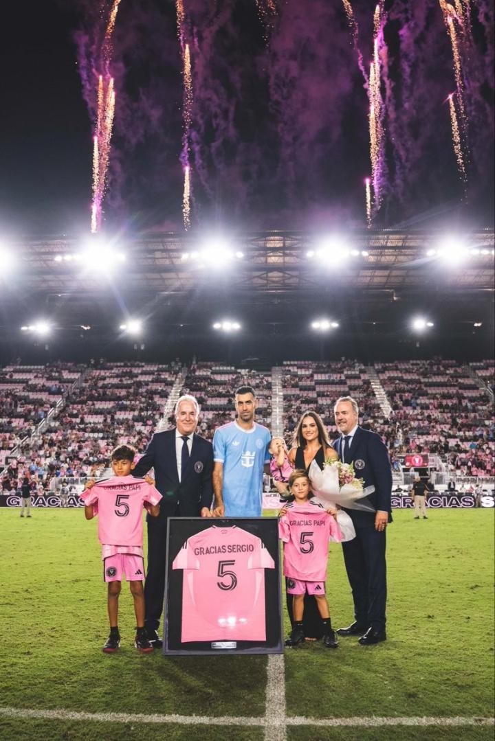 致敬,迈阿密国际赛后为即将退役的布斯克茨举办纪念仪式ETChalmers @懂球帝2025-10-05 10:39北京时间10月5日,在与新英格兰革命赛后,迈阿密国际为本赛季结束后退役的布斯克茨举办了纪念仪式。现年37岁的布斯克茨宣布他将在本赛季结束后挂靴,结束辉煌的职业生涯。在今日与新英格兰革命的比赛后,迈阿密国际为布斯克茨举办了纪念仪式,向这位传奇致敬。这位西班牙中场携家人出席仪式,并与俱乐部高层、队友和工作人员合影留念。展开更多