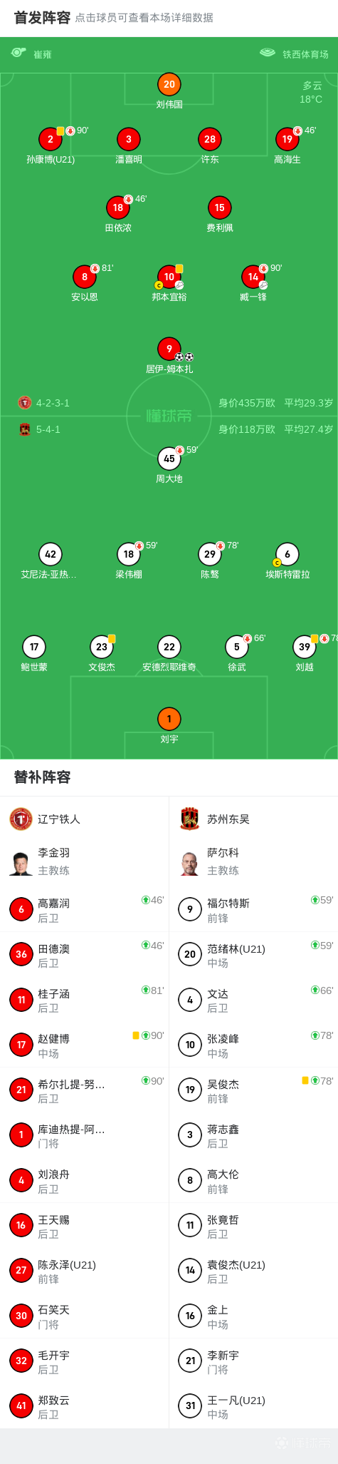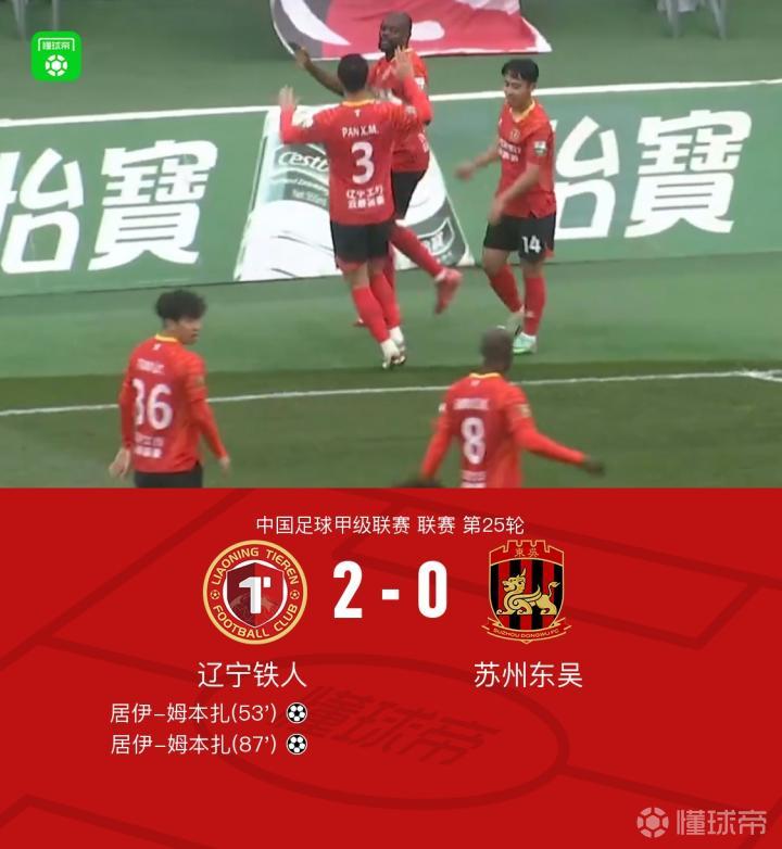 辽宁铁人2-0苏州东吴终结3场不胜,姆本扎双响,邦本宜裕助攻