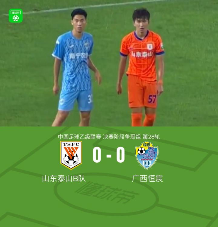 北京时间10月5日,中国足球乙级联赛决赛阶段争冠组第28轮,山东泰山B队主场对阵广西恒宸。比赛中,纪鑫龙错失良机,艾孜海尔造险。最终比分山东泰山B队0-0广西恒宸。