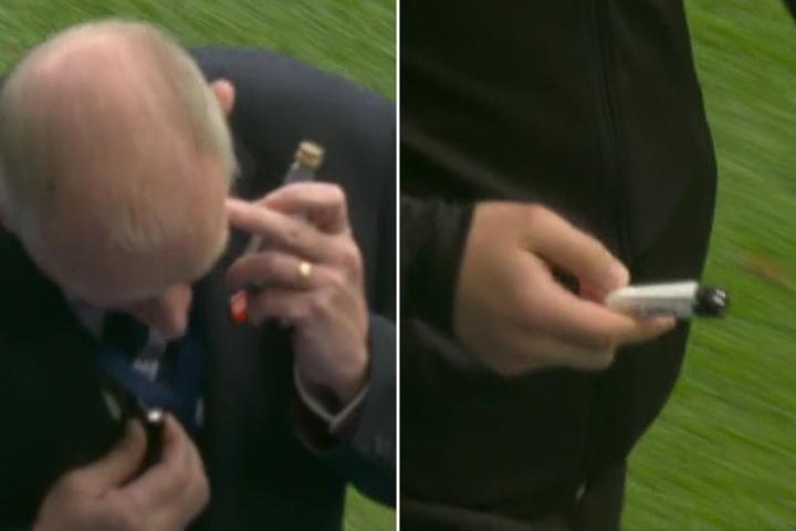 电视画面显示,一名身穿黑色上衣的裁判从草坪上捡起一个白色打火机,而另一画面中还能看到疑似烈性酒瓶被掷入场内。