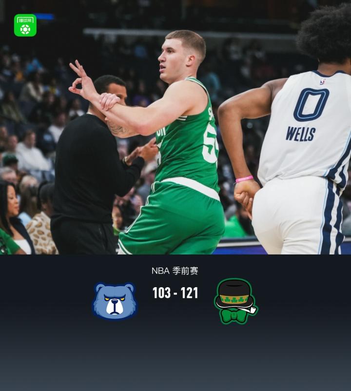第四节灰熊考沃德拿下9分,凯尔特人谢尔曼拿下5分,最终灰熊103-121不敌凯尔特人