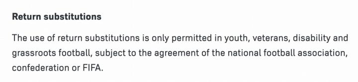 讨论“回场换人”前,我们再熟悉一下现在通行的足球换人规则。