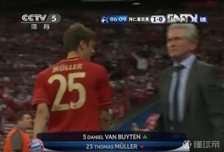 11-12赛季欧冠决赛,拜仁主帅海因克斯在第87分钟用范比滕换下了刚刚进球的穆勒,试图加强防守,但切尔西队1分钟后扳平了比分。海因克斯的换人被质疑为保守,但换人不可逆转。