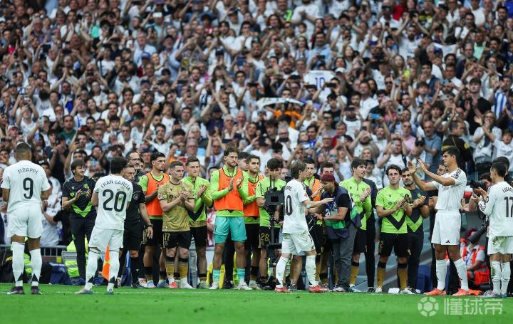(注:莫德里奇告别伯纳乌,被换下时接受球迷致敬)