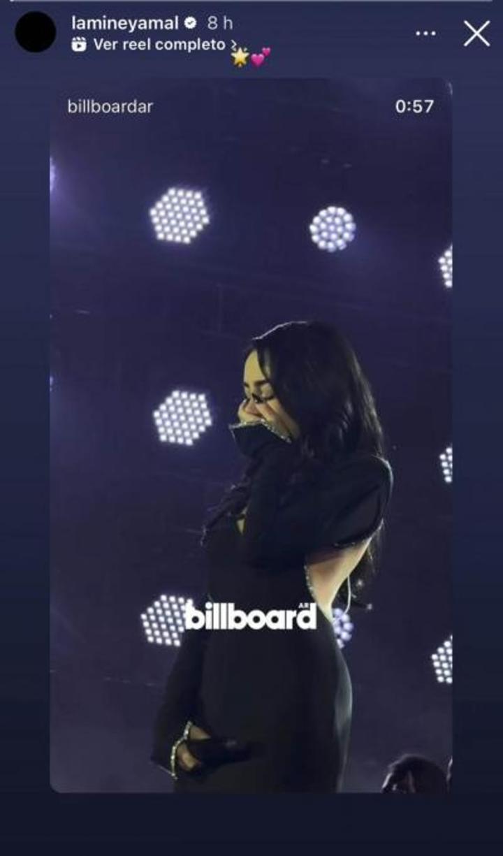 隔着一片大洋,她的男友亚马尔也不忘远程作出回应。亚马尔转发了一段视频,这段视频展示了Nicki Nicole在演出结束时站在舞台上几乎泪崩的时刻。