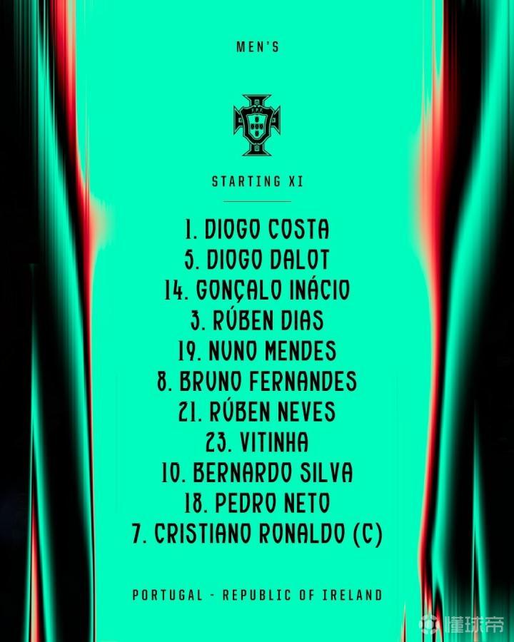 葡萄牙vs爱尔兰:C罗领衔,B费、B席、维蒂尼亚出战