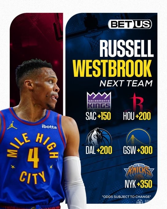 威少最新下家赔率:国王居首,火箭独行侠并列第二&勇士第四