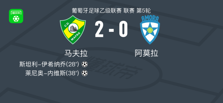 马夫拉2-0阿莫拉,斯坦利-伊希纳乔建功,莱尼奥-内维斯锦上添花
