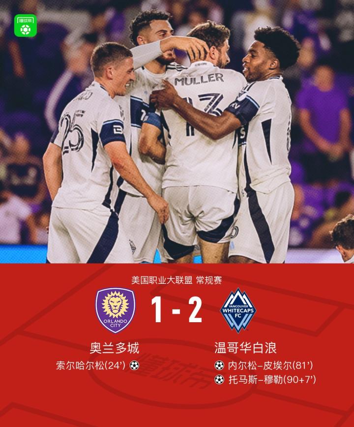 温哥华白浪2-1逆转奥兰多城,穆勒补时绝杀,皮埃尔建功