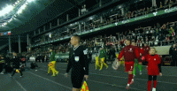 双方球员入场,比赛马上开始