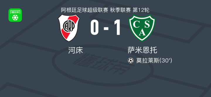 萨米恩托1-0河床,莫拉莱斯制胜球战报bot @懂球帝2025-10-13 08:17北京时间10月13日,阿根廷足球超级联赛秋季联赛第12轮,河床坐镇主场迎战萨米恩托。比赛中,萨米恩托球员莫拉莱斯攻入全场唯一进球,帮助球队取得领先。凭借此次破门,萨米恩托客场1比0战胜河床,全取三分。点击查看本场比赛详细数据>>点击查看阿超完整积分榜>>精彩瞬间第30分钟,萨米恩托球员莫拉莱斯打入一球。 球队阵容 技术统计 展开更多