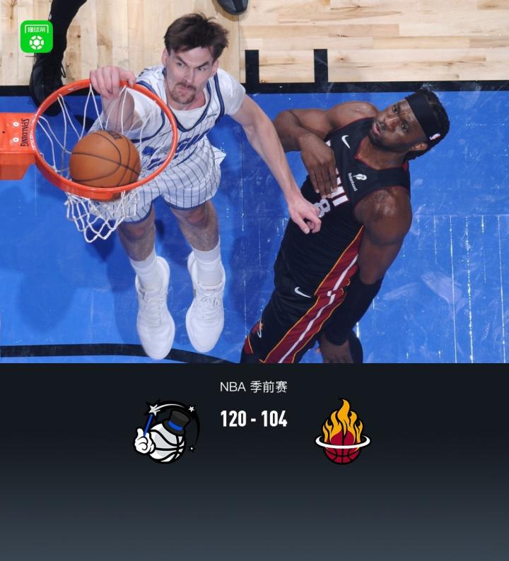 魔术120-104小胜热火,小瓦格纳17+5,凯尔-韦尔24分