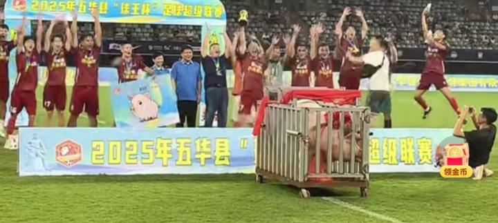北京时间10月12日晚,2025五华县“球王杯”足球超级联赛(梅州五华“县超”)正式落下帷幕。决赛中,横陂队战胜转水队捧起冠军奖杯。网传视频显示,横陂队的冠军奖励是一头400斤重的猪。