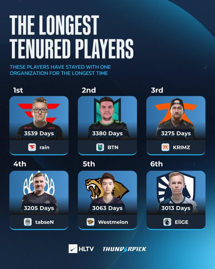 rain为FaZe的效力时长定格在3539天,位列全部选手历史第一,而他本人表示还不会退役。