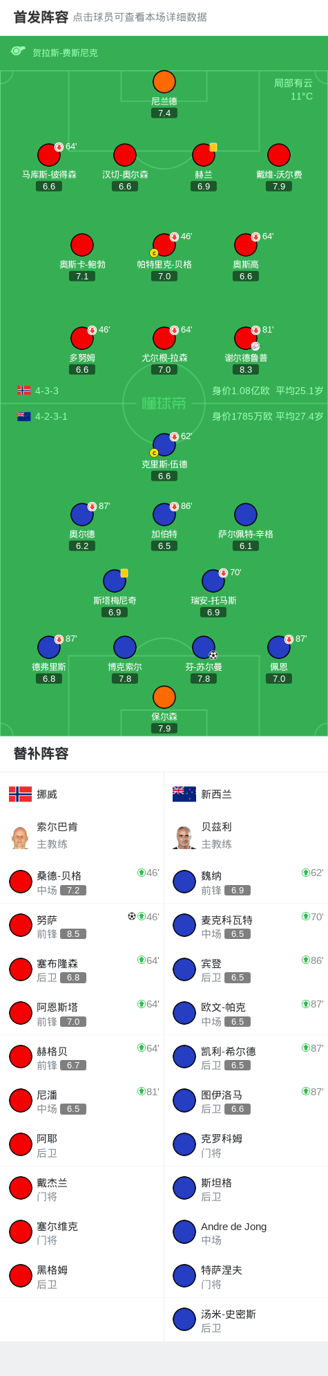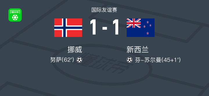 挪威1-1新西兰,芬-苏尔曼破僵,努萨扳平
