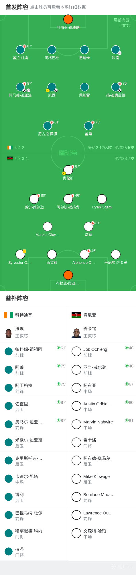 第7分钟,科特迪瓦球员阿马德-迪亚洛助攻凯西打入一球。