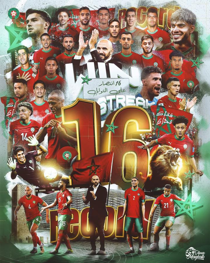 阿特拉斯雄狮,摩洛哥国家队各项赛事迎来16场连胜,创造历史ZeroTsu_02 @懂球帝2025-10-15 16:15北京时间10月15日,据摩洛哥足协官方消息,摩洛哥国家队在各项赛事迎来16场连胜,创造了历史纪录。据悉,此前该纪录是由西班牙所保持的,他们曾在2008年6月至2009年6月期间取得15场连胜。据统计,摩洛哥国家队自2024年3月26日与毛里塔尼亚0-0战平后,赢得了之后的所有比赛。此前,摩洛哥已经提前晋级了2026年美加墨世界杯正赛。展开更多