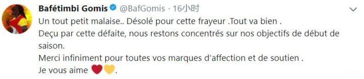 虚惊一场,戈米推特报平安尼加拉瓜喵 @懂球帝2018-02-19 20:02在今天凌晨的一场土超比赛中,加拉塔萨雷客场1-2不敌卡斯帕萨,客队射手戈米在比赛中一度晕厥,令人担心。不过赛后,他通过社交媒体报了平安。相关新闻:【担心!前斯旺西射手比赛中一度昏迷,竟被允许踢完全场】比赛结束后,戈米在推特上写道:“稍稍有些不适……不好意思造成了恐慌,现在一切都没问题。比赛失利让人失望,但我们还是专注于赛季的目标。感谢所有人的关爱和支持。”展开更多