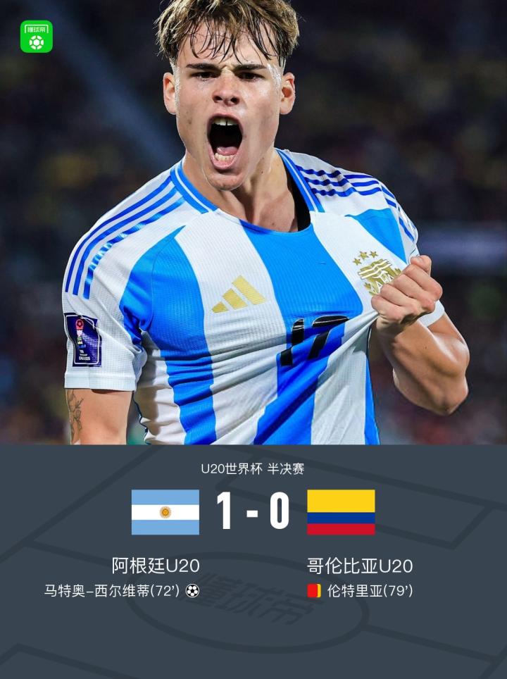 U20世界杯:阿根廷1-0十人哥伦比亚与摩洛哥会师决赛,西尔维蒂制胜