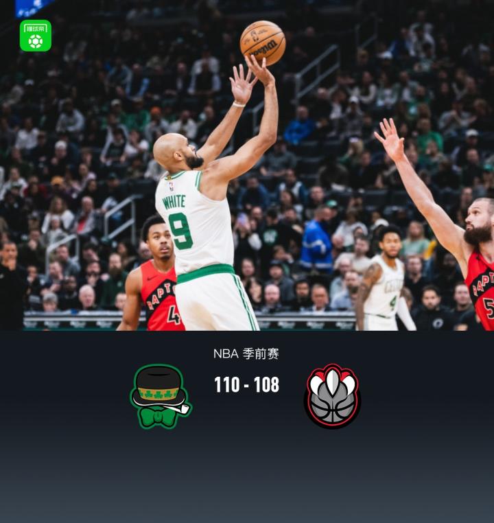 第四节凯尔特人德里克-怀特拿下8分,猛龙贾米森-巴特尔拿下6分,最终凯尔特人110-108战胜猛龙