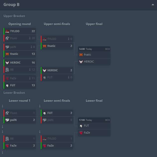 FNC、HEROIC跻身Playoff,FUT与FaZe争夺最后一个晋级名额。