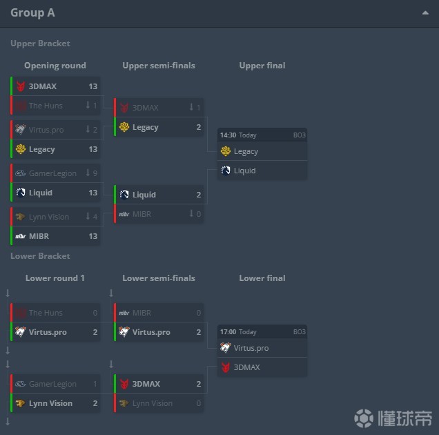Legacy、Liquid跻身Playoff,VP与3DMAX争夺最后一个晋级名额。