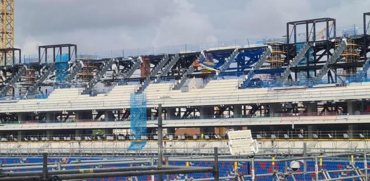 侧看台的建设阶段预计还会持续几天,如果计划不变,接下来将会是北看台的第三层建设,之后是南看台和主看台区域的施工。