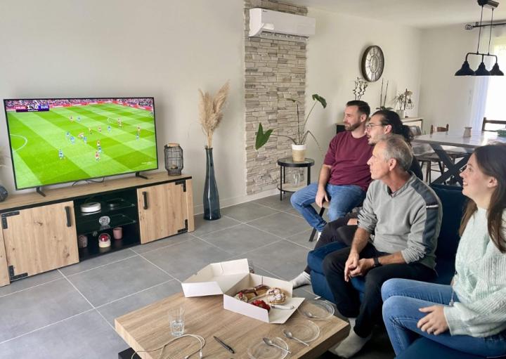 曼联对阵桑德兰的比赛开始前一小时,玛埃娃正在包装一件背面印着“姆伯莫”名字的婴儿连体衣,准备送给朋友当礼物。门铃响了,她的公公让和小叔子阿德里安提着点心赶来,和玛埃娃及她的伴侣凯文一起坐下看球。