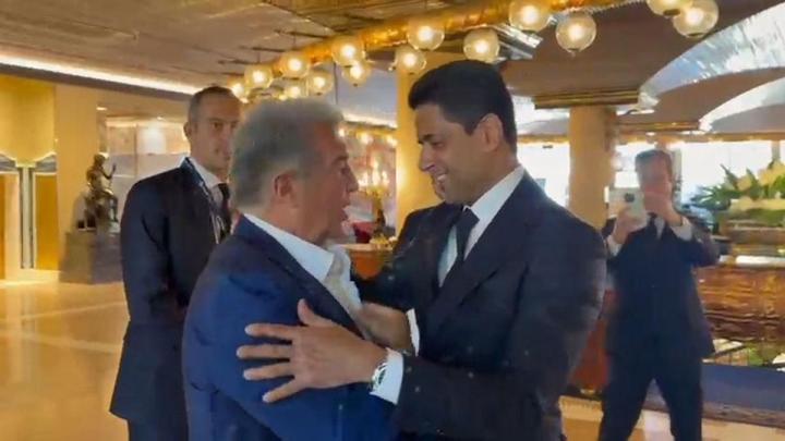 在罗马举办的欧洲足球俱乐部大会上,纳赛尔热情主动地迎接了拉波尔塔,还与其开起了玩笑,现场气氛十分融洽。