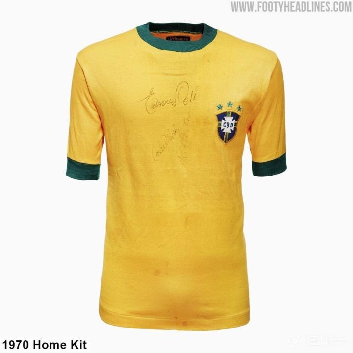 1970年墨西哥世界杯的巴西主场球衣,被认为是国家队历史上最具代表性的战袍之一。那一年,巴西在决赛中以4比1击败意大利,豪取队史第三座世界杯冠军。