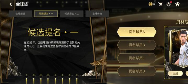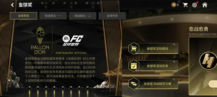 金球荣誉章节中,玩家可以通过完成相关赛事,获得金球奖活动代币,进而抽取球星票券。使用球星票券可以在后续章节兑换奖励以及参与专属交换。
